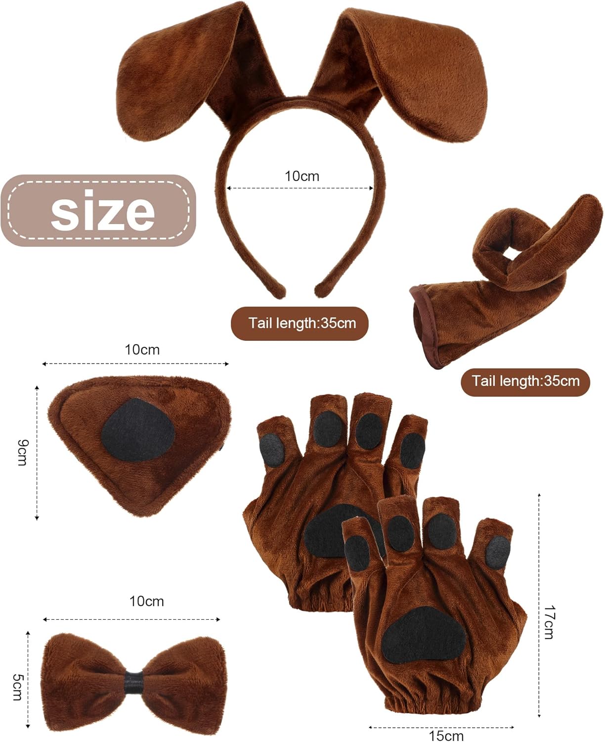 Comfortable to Wear: the dog ear headband is elastic and can fit most head sizes, the iron wire inside allows to adjust the ears flexibly; The tail and nose are designed with adjustable ties and the dog claw gloves come with stretch cuffs, bringing snug fitting