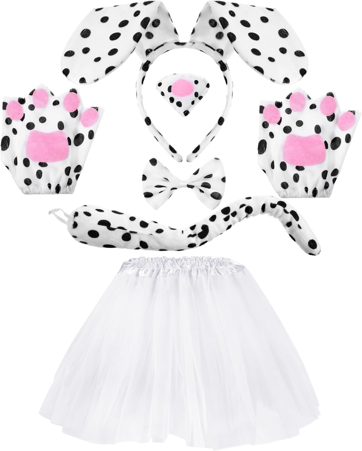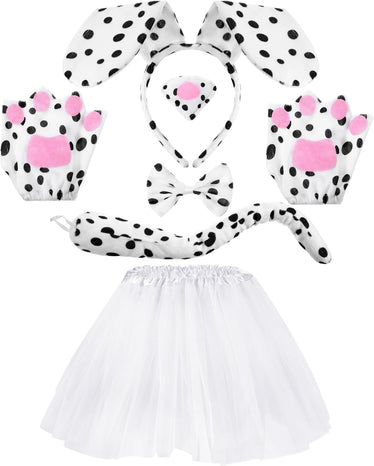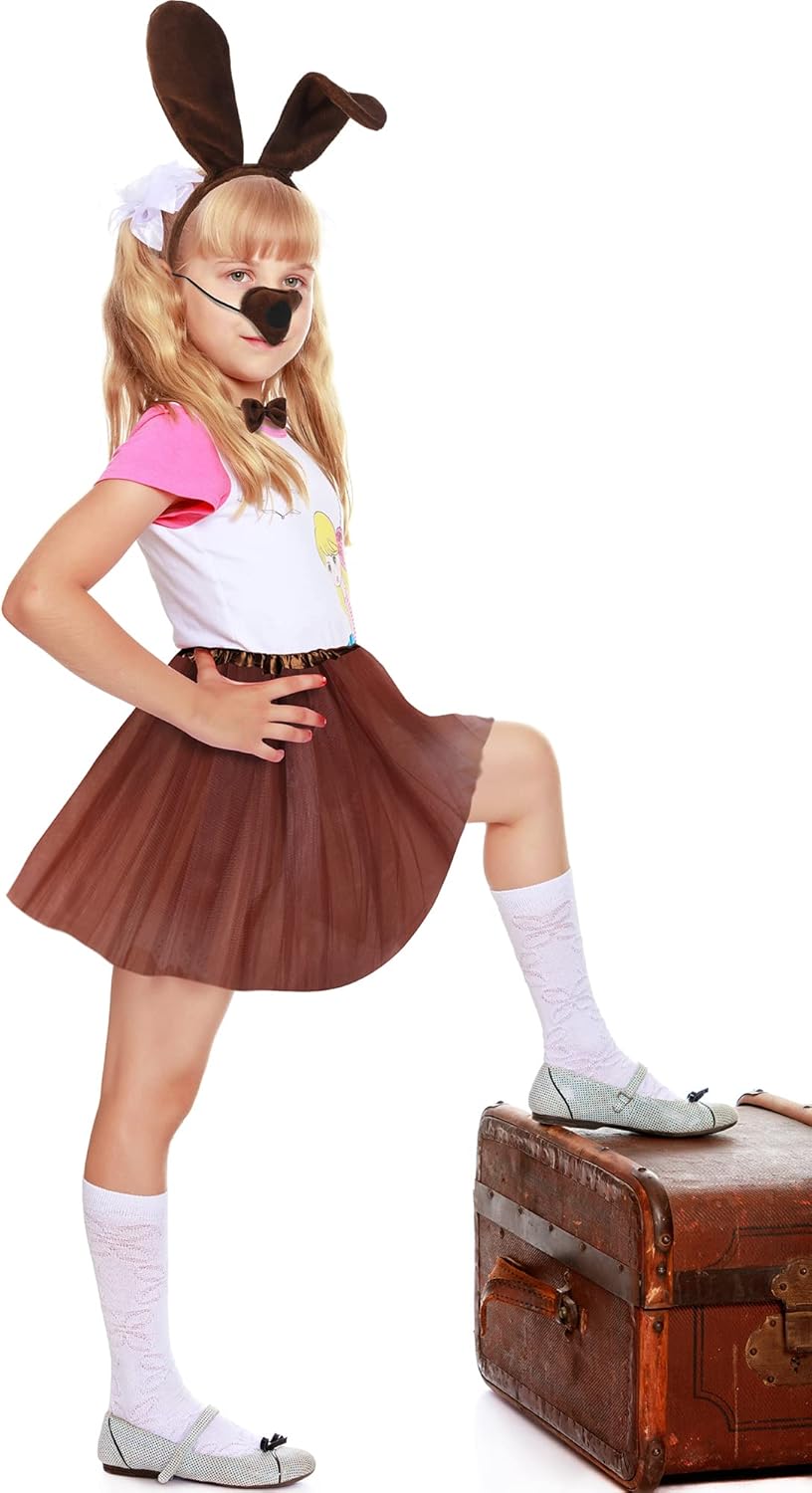Dog Costume Set: the dog costume for girls includes 1 piece of puppy ears headband, 1 piece of bow tie, 1 piece of long tail, 1 piece of fake nose with an elastic belt, 1 pair of dog paw gloves, 1 piece of tutu skirt, which can help create an adorable look for your Halloween or animal cosplay party