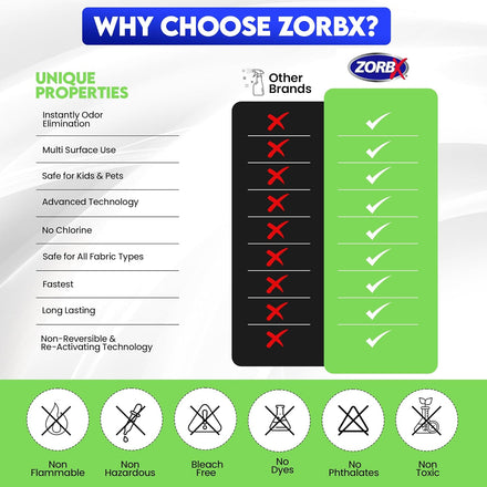 With just a little splash of ZORBX odor-eliminating products, you can tackle all kinds of odors.