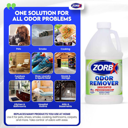 - INSTANT, PERMANENT, ADVANCED PATENTED MULTIPURPOSE ODOR REMOVAL FORMULA: We continue utilizing safer, superior, and more advanced odor removal technologies to provide our customers with the best products. With just a little splash of ZORBX odor remover, you will be able to tackle all kinds of odors like professionals no matter how strong they are. Our odor remover formula is the permanent solution to your odor problems.